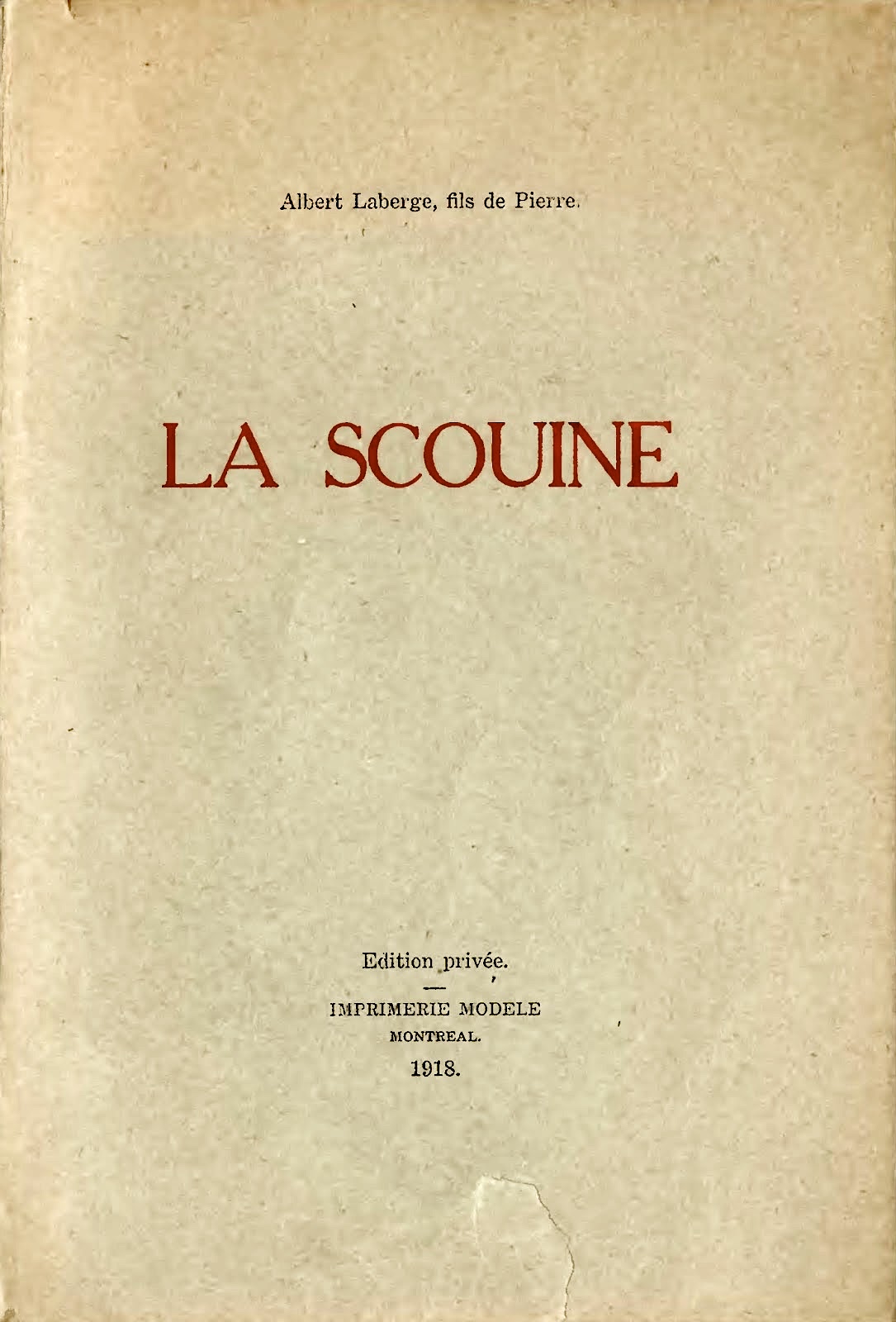 Date de parution : L’œuvre littéraire La Scouine a été publiée pour la première fois en 1918 en édition privée et tirée à soixante exemplaires. En 1968, paraît une reproduction photographique de la première édition, toutefois retirée du commerce peu de temps après. Puis, en 1972 et 1980, des rééditions du texte de 1918 sont publiées. Pour plus de détails sur ces différentes éditions, se référer à l’édition critique des Presses de l’Université de Montréal.